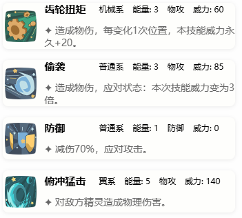 万金油般的角色,主动切出来自动放一号位技能简直夯爆了,齿轮和偷袭都可以触发龙威,齿轮打完偷袭变成一号位,下次切出来可以打对面上状态,没有龙威印记也能切出来收对面残血,防御消耗对面能量。